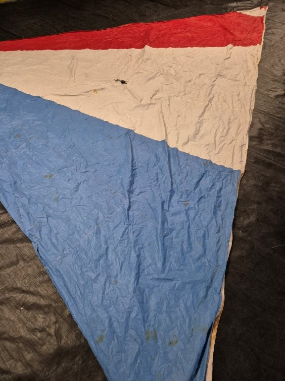 This Asymmetrical Spinnaker is rated 5/10 so is in average condition. Originally off a 16ft Skiff. Blue round sail bag provided.