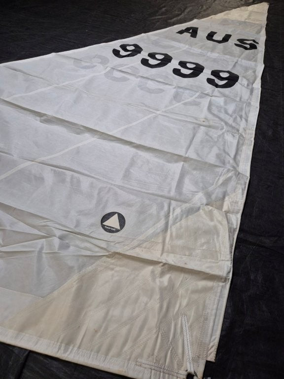 This Sails Dacron Jib/Genoa is rated 8/10 so is in very good condition. Small rust stains at clew. Red round sail bag provided.