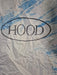 This Hood Sails Symmetrical Spinnaker is rated 5/10 so is in average condition. There is blue colour bleeding throughout, rust stains and many repairs (refer to photos). Blue round sail bag provided.