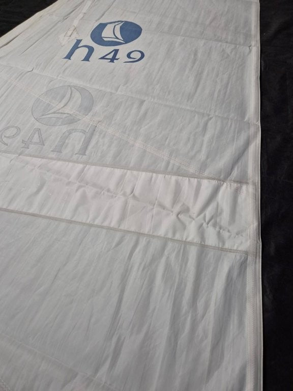 This UK Sails In Mast Furling Mainsail (IMF) is rated 7/10 so is in good condition. Sun damage at upper-top 3rd of leech requires repair (refer to photos). Battens provided, a freight quote will be required due to the length of the battens CONTACT US for a quote. Originally off a Hunter 49. Sail bag not provided.