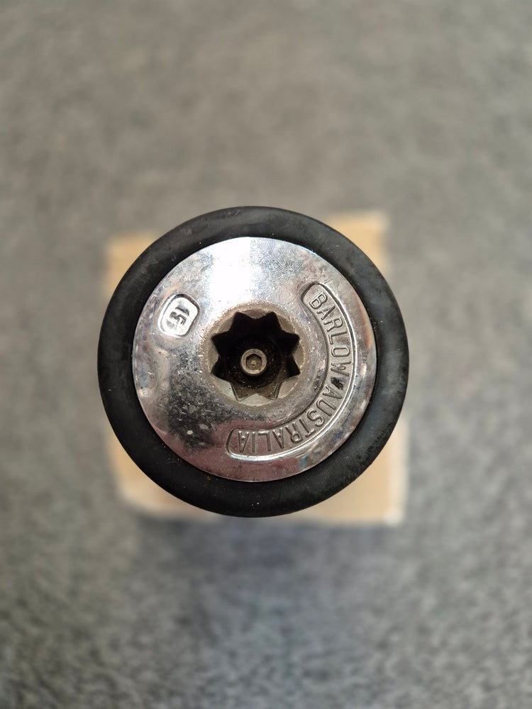 This Barlow 15 2 Speed Chrome Bronze self tailling Winch is rated 7/10 so is in good working condition. The winch is mounted on a section of deck.