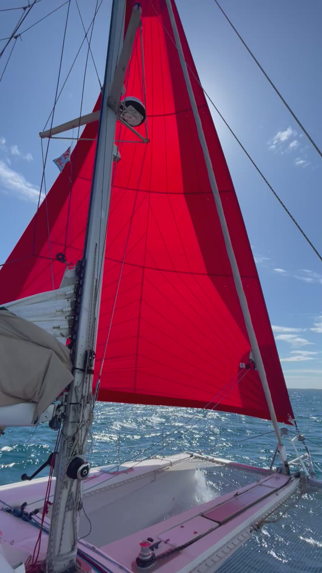 Characterised as a Cruising Code Zero it is a close reaching sail capable of near upwind sailing in light winds due to the sectional and edge shapes and broad reaching in moderate plus winds due to the high clew that lets the sail fly away from the boat.