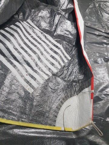 Velcro sewn on clew patch to enable sail to remain furled