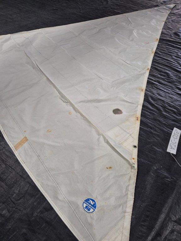 This North Sails Dacron Genoa is rated 5/10 so is in average condition. The sail has been recut to lift the clew. The webbing snaps have been cut off (refer to photos). Blue round sail bag provided.