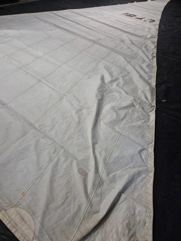 This Dacron Genoa is rated 4/10 so is in below average condition. There has been major repairs at the clew. Originally off an S&S 34. Yellow round sail bag provided.