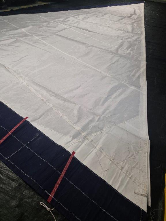 This Ullman Sails Dacron Roller Furling Genoa (RFG) is unused and is rated 10/10. The head, tack and clew of the sail are unfinished the cost for finishing the sail is included in the listed price. Originally made for a Beneteau 46. The sail has a 'Captain Navy' UV sun cover on the starboard side and has double tape reinforcing along the luff, leech and foot. Red/blue round sail bag provided.