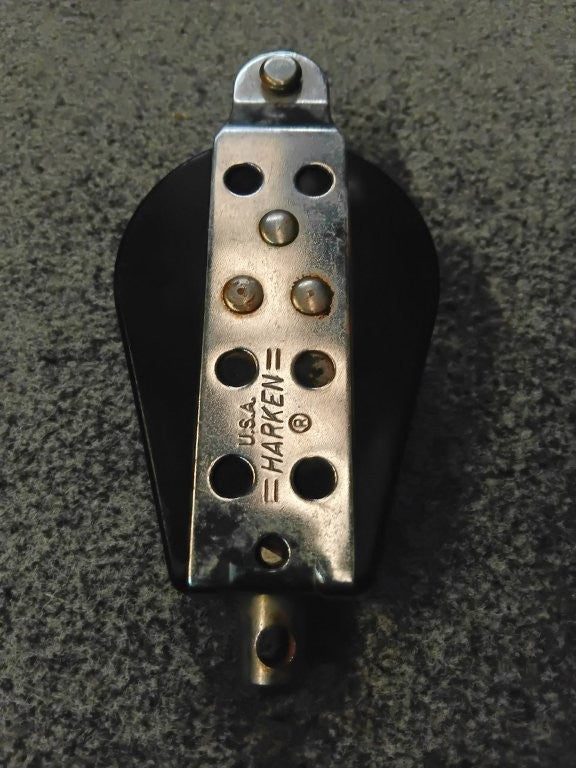 This Harken 75mm Single Swivel Bullet Block with Becket is rated 7/10 so is in good condition. There is some minor rust staining on one side, D-shackle not included (refer to photos).