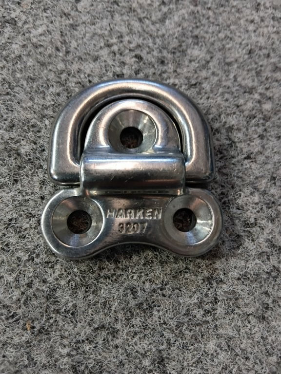 This Harken 6mm Folding Pad Eye is unused and is rated 10/10. Includes rubber base (refer to photos).
