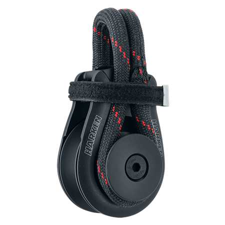 These multipurpose blocks are a must on racing yachts of all sizes. Opening sideplates make them easy to deploy, allowing crew to quickly fasten them wherever needed—perfect for temporary leads, line deflection, and static line functions requiring small adjustments. A strop soft-attach is fixed on one side, but is easily removable on the other. The strop carries the block’s primary load and articulates for a fair lead. The Velcro® strap is permanently attached to one sideplate and holds the block securely closed when sideplates are aligned—even under the highest loads. The strap has a broad reflective tab for easier operation with gloves.