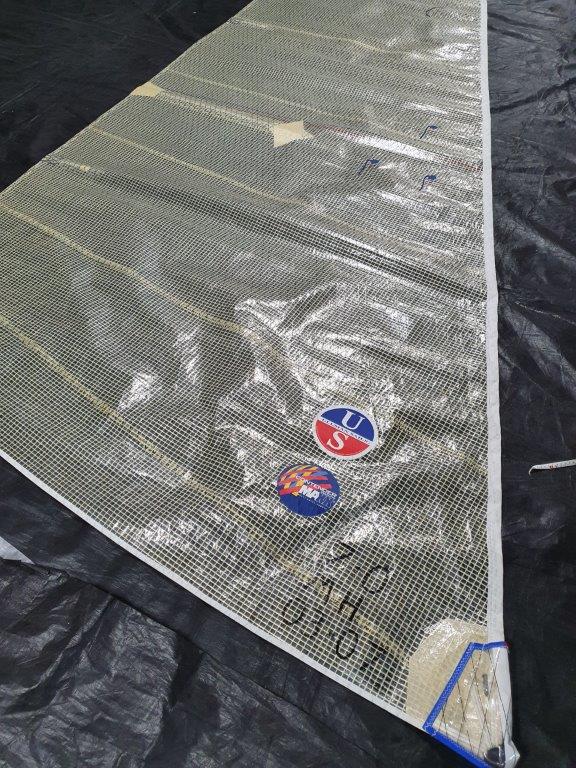 This Ullman Sails Jib is rated 3/10 so is in poor condition. This sail has delamination along the foot. The sail should not be hoisted we recommend repurposing the sail. Battens included and installed in sail - a freight quote will be required due to the length of the battens, CONTACT US for a quote. Red/blue sail bag provided.
