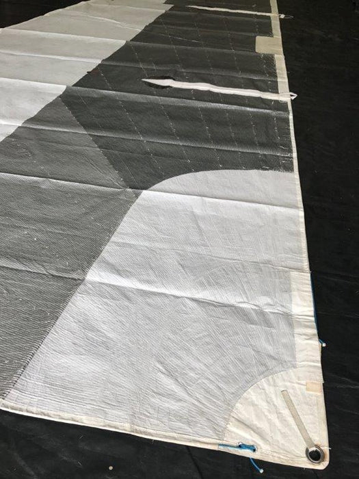 This Hood Sails jib is rated 4/10 so is in below average condition. Sail has broken film above clew patch. Sail requires sticky back on leech. Battens included however a freight quote is required due to the length of the battens CONTACT US for a quote. Blue sail bag provided.