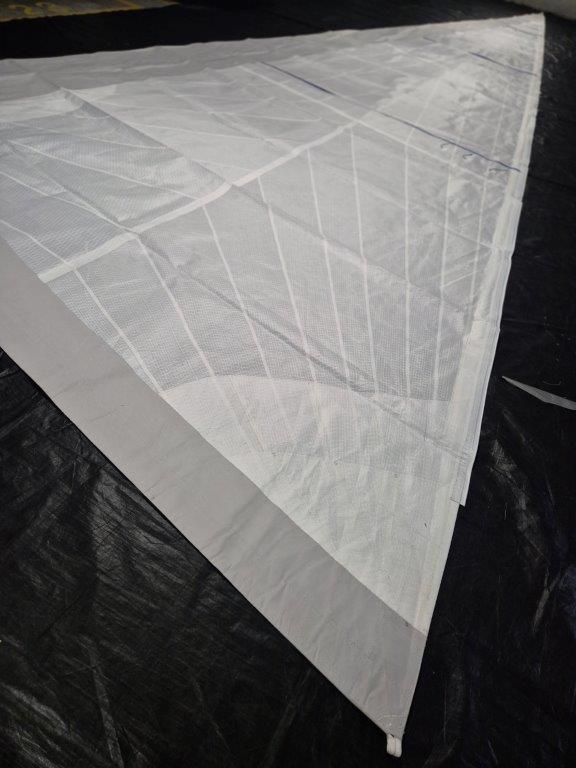 This DCX Polyester Cruise Laminate Roller Furling Jib (RFJ) is unused and is rated 10/10. The sail has a grey UV suncover on the starboard side. Made to be self tacking with clew board fitted. Battens provided. Made for a Hanse 415. Grey round sail bag provided.