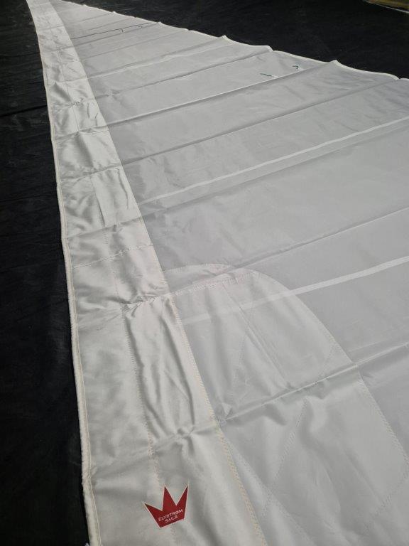 This Elvstrom Sails Dacron self tacking furling Jib (RFJ) is rated 10/10. This sail is brand new - never been used and ready for dispatch. White UV suncover is on starboard side. Originally built for a Dufour 412 ML. Grey round drawstring sail bag provided.