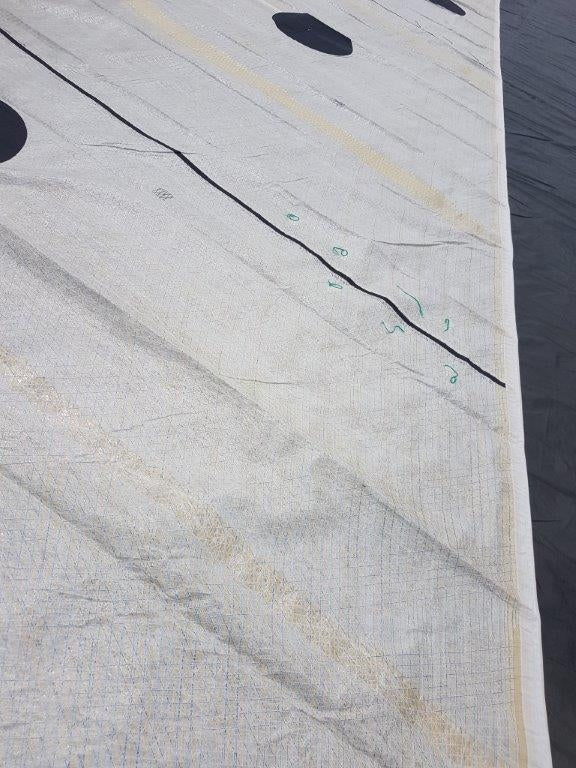 This membrane jib is rated 1/10 so it is NOT SUITABLE TO BE HOISTED as it is totally delaminated. We would recommend it could be used as a sun cover, tarp or project. Sail bag not provided.