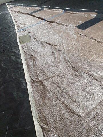 This North Sails 3DL jib is rated 2/10 so is in very poor condition and not suitable to be hoisted. We suggest repurposing this sail. It has been well used and has large sticky back repair up leech and along foot. There is some delamination on leech. Sail originally off a Davidson 60. Blue sail bag provided.