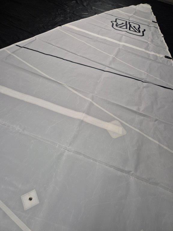 This Dacron Mainsail is unused and is rated 10/10. Battens not provided, CONTACT US for quote and supply. made for a Dufour 310. The sail has single line reefing with the 1st reef on starboard and the 2nd reef on port. The intermediate slides on this sail are not webbed on but are attached to a plastic fitting via shock cord (refer to photos), the attachment of these 4 slides will likely need to be replaced with webbing after some moderate use or prior to any heavy use. The top 2 battens on this sail are luff fed and the lower 2 are leech fed (refer to photos). Grey round sail bag provided.