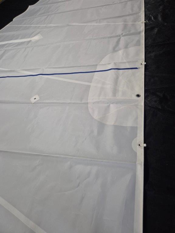 This Dacron Mainsail is unused and is rated 10/10. Battens not provided, CONTACT US for quote and supply. Made for a Ricochet 1450. Black round sail bag provided.