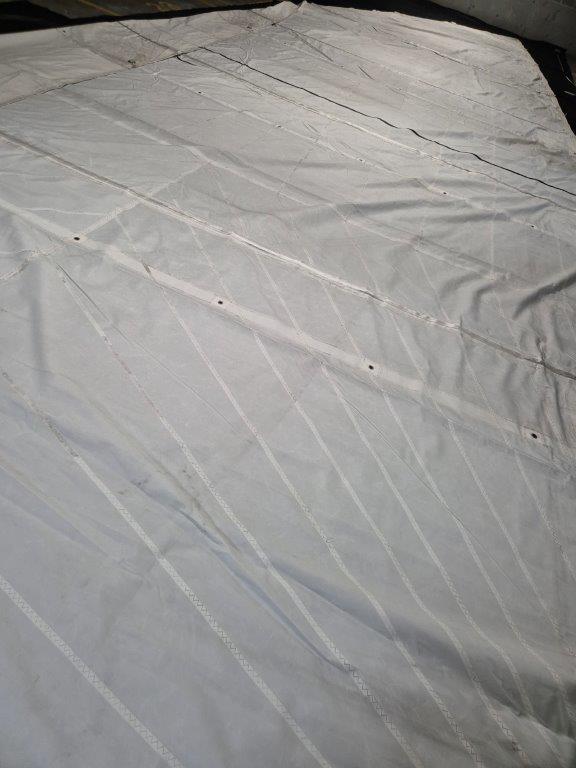 This Rolly Tasker Dacron Mainsail is rated 8/10 so is in very good condition. Originally built for a Lagoon 570 Catamaran. Battens and sail bag not provided, CONTACT US for quote and supply. Sail has a 2 ply leech and luff to leech full width re-enforcement. We recommend a professional VACUWASH sail cleaning service as the sail is dirty.