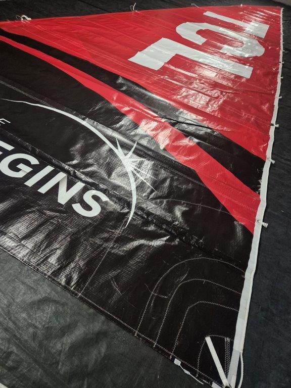 This One Sails Kevlar Laminate Mainsail is as new and is rated 10/10. Created for a promotion the sail is printed with a large text 'TCL', 'where the dream begins'. Battens not provided, CONTACT US for quote and supply. Originally off a Hunter 36. Grey/red round sail bag provided.