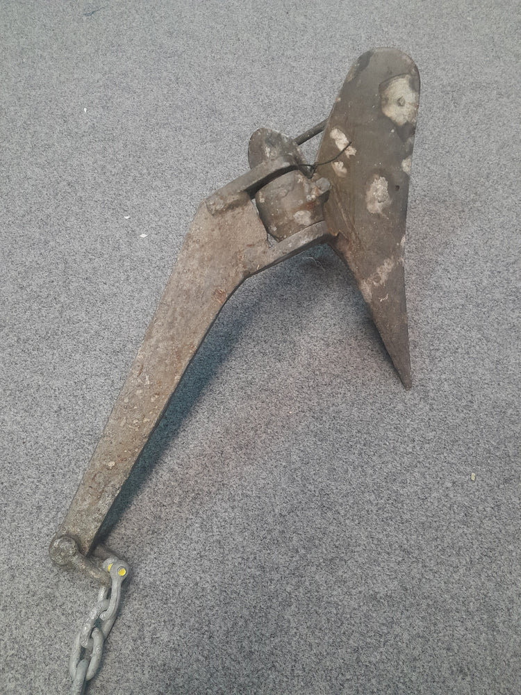This Steel Hinging Plow Anchor is rated 6/10 so is in above average condition. The anchor includes 2m of chain and 42m of 10mm double braid rope (refer to photos).