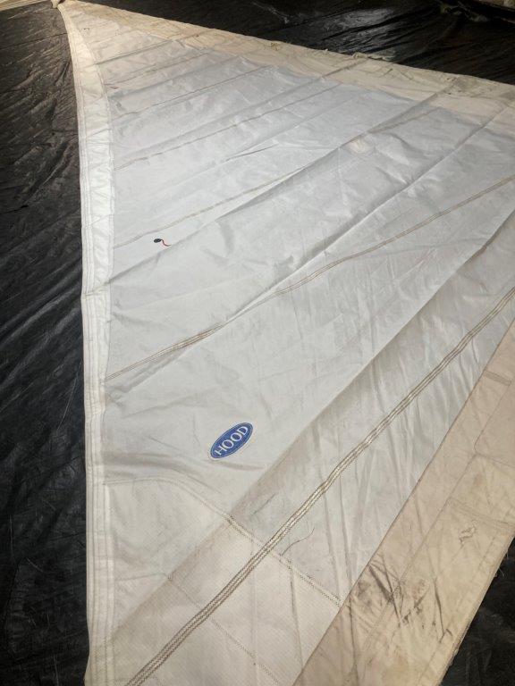 This Hood Sails Dacron Staysail is rated 7/10 for the main body of the sail which is in very good condition. The UV sun cover is rated 2/10 as it required replacing (cost $695). Note the staysail block can easily be removed and a ring installed. Blue round draw string bag provided.