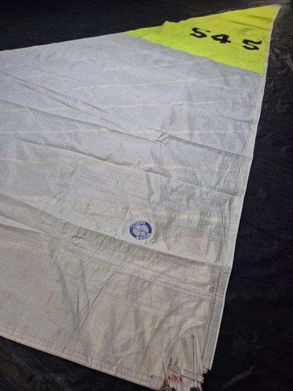This Anson Sails Dacron Storm Trysail is rated 7/10 so is in good condition. Originally off a Farr 45. Blue round sail bag provided.