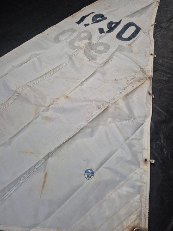 This North Sails Dacron Storm Trysail is rated 7/10 so is in good condition. There are rust stains throughout from storage (refer to photos). Yellow round sail bag provided.